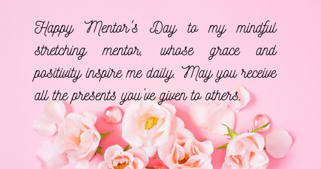 24. I carry your lessons into my everyday life. Thank you for every position, every reminder to breathe, and every smile. Happy Mentor’s Day, my wonderful stretching mentor. Sincere thanks to the best stretching mentor. Your sessions are my sanctuary, and your words are pure motivation. Hope you have serenity on this mentor’s Day.